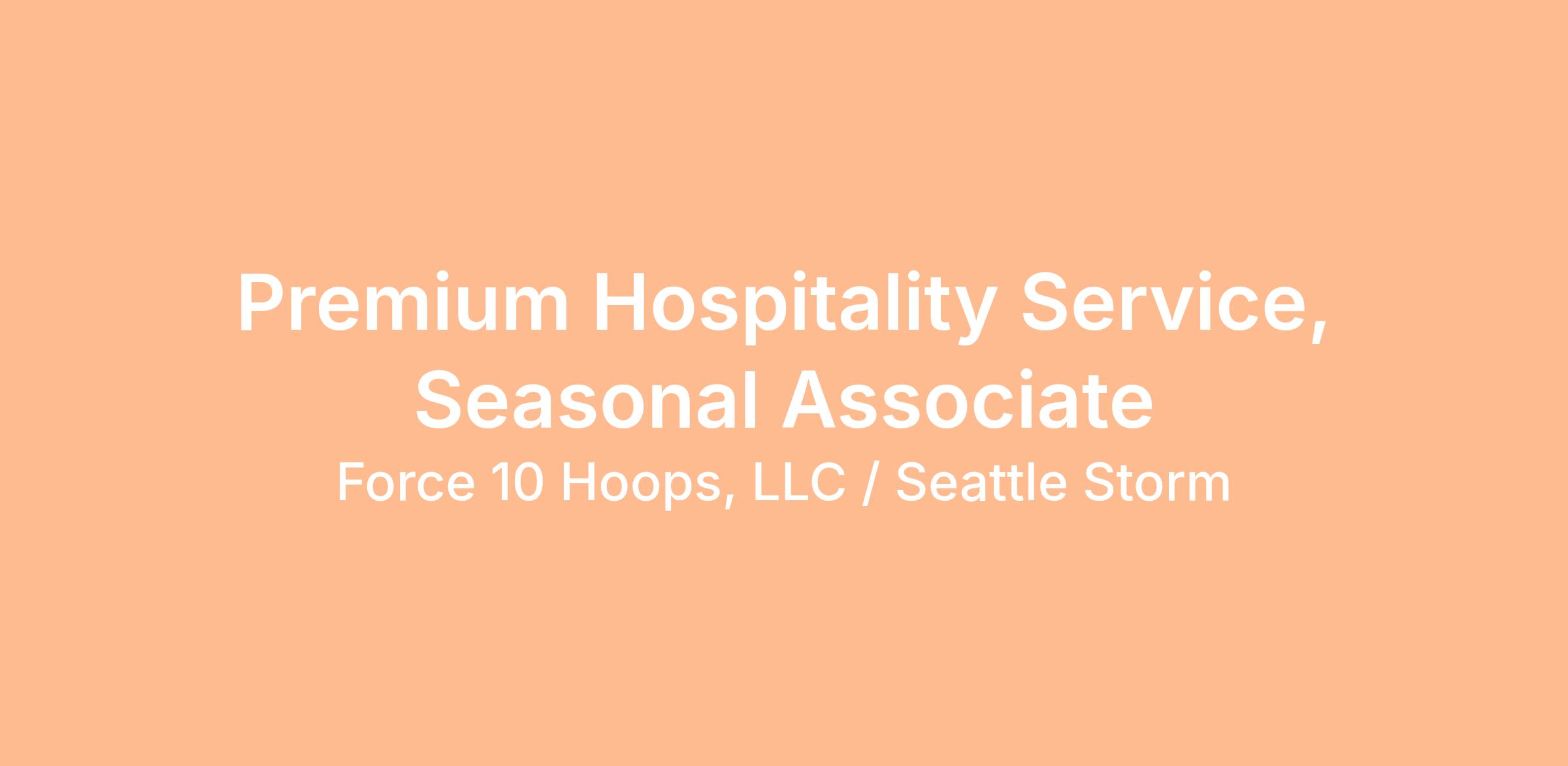 The WNBA Seattle Storm is seeking a professional, high-energy individual with a strong commitment to delivering exceptional VIP service and contributing to the overall success of the Seattle Storm’s Premium Hospitality operations. The Premium Hospitality Service Associate will report directly to the Premium Hospitality Team and provide comprehensive support across all premium initiatives and activations. This role is responsible for assisting with game-day operations, supporting client-facing experiences, and completing assigned in-office tasks that contribute to the smooth execution of premium services. This is a seasonal, part-time position requiring approximately 30 hours per week.
