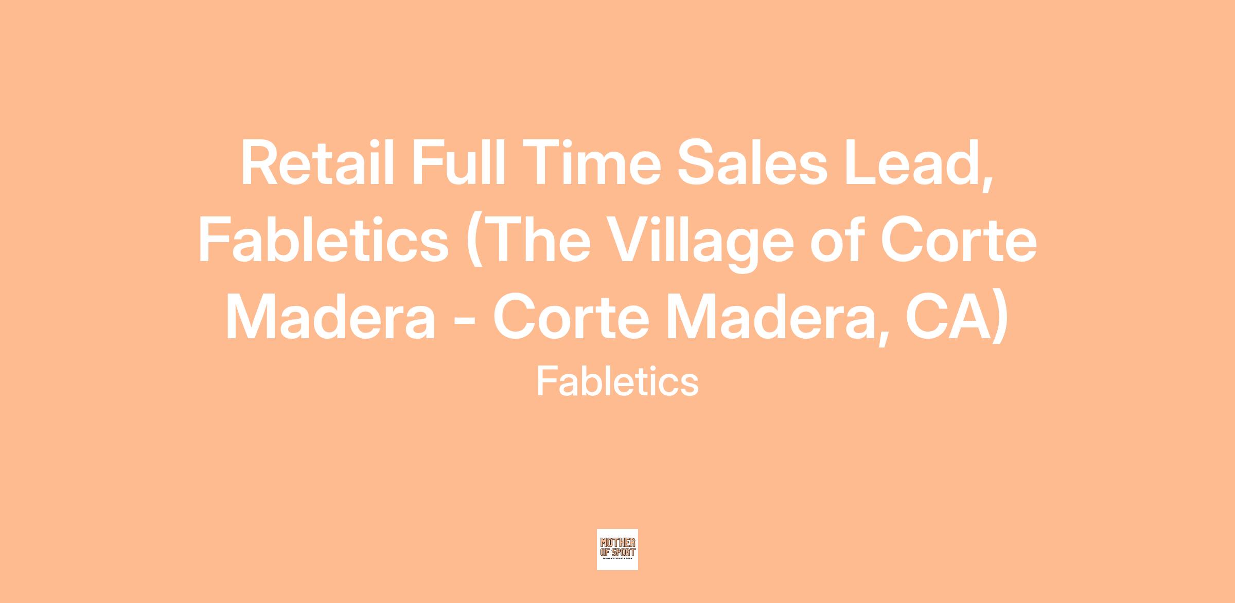 Fabletics is currently looking for a Full-Time Sales Lead for our store at The Village of Corte Madera - Corte Madera, CA!!