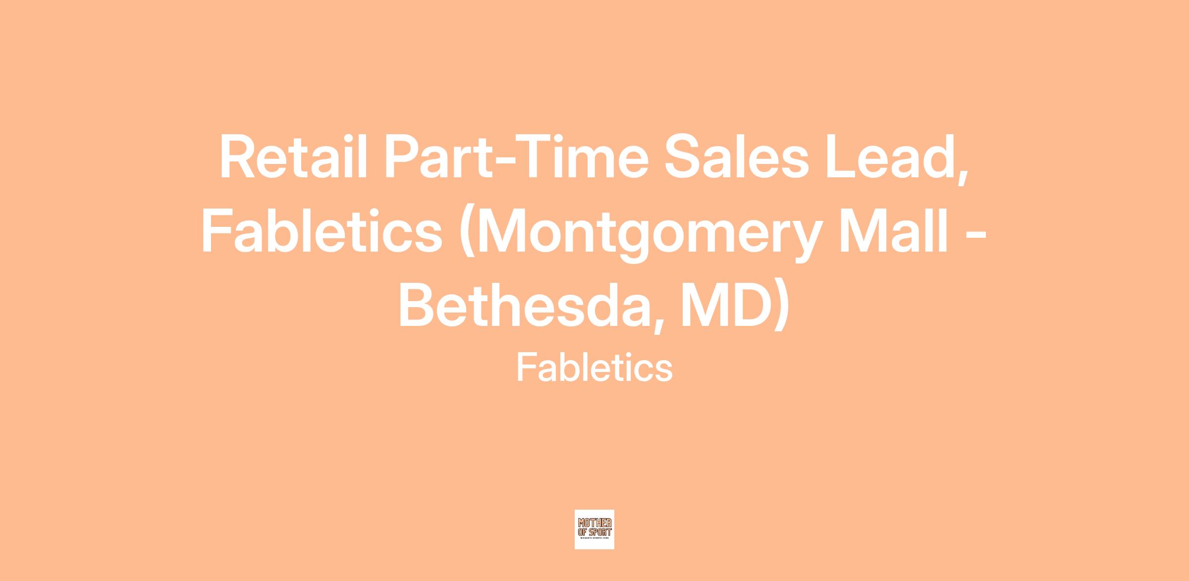 Fabletics is currently looking for a Part-Time Sales Lead for our upcoming location at Westfield Montgomery in Bethesda, MD!