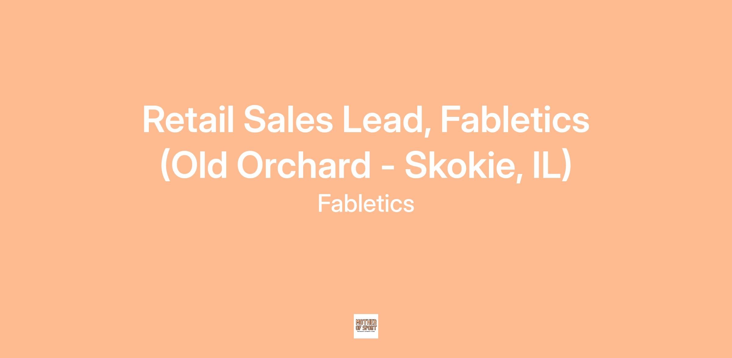 Fabletics is currently looking for a Full-Time Sales Lead for our retail store at Old Orchard in Skokie, IL!