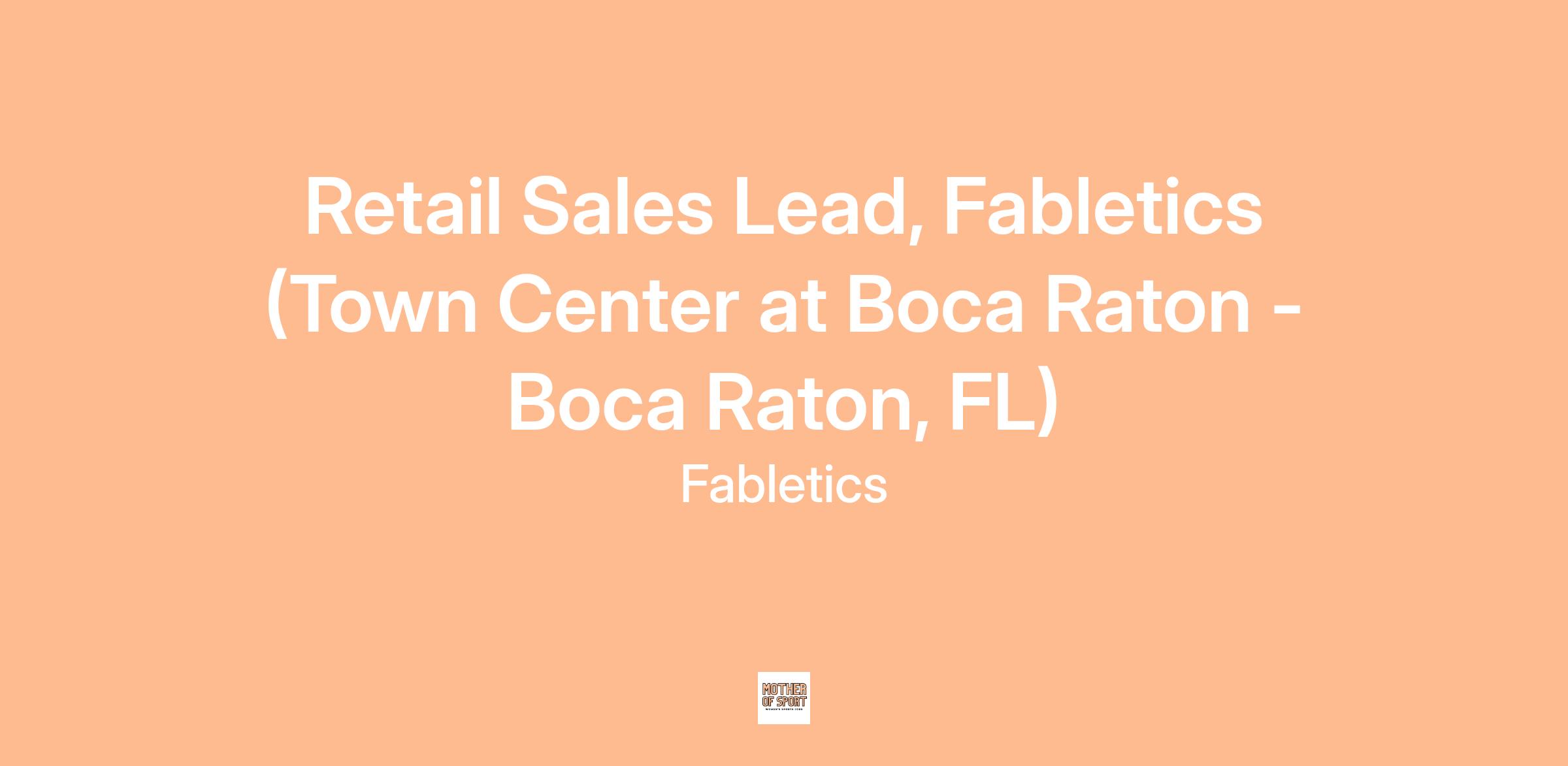 Fabletics is currently looking for a Full-Time Sales Lead for our retail store at Town Center at Boca Raton - Boca Raton, FL)