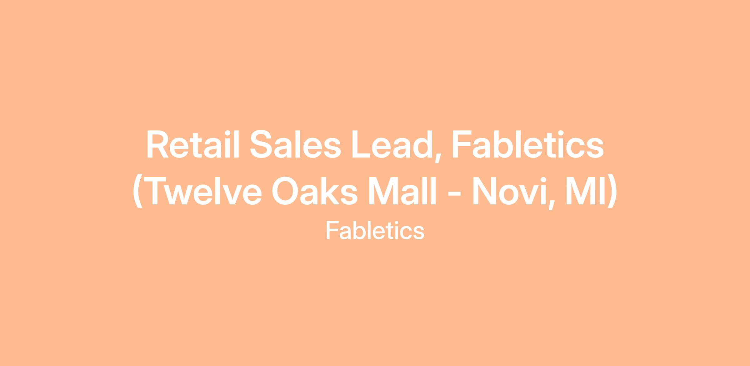 TechStyle Fashion Group - Fabletics is currently looking for a Full-Time Retail Sales Lead at Twelve Oaks Mall in Novi, MI!