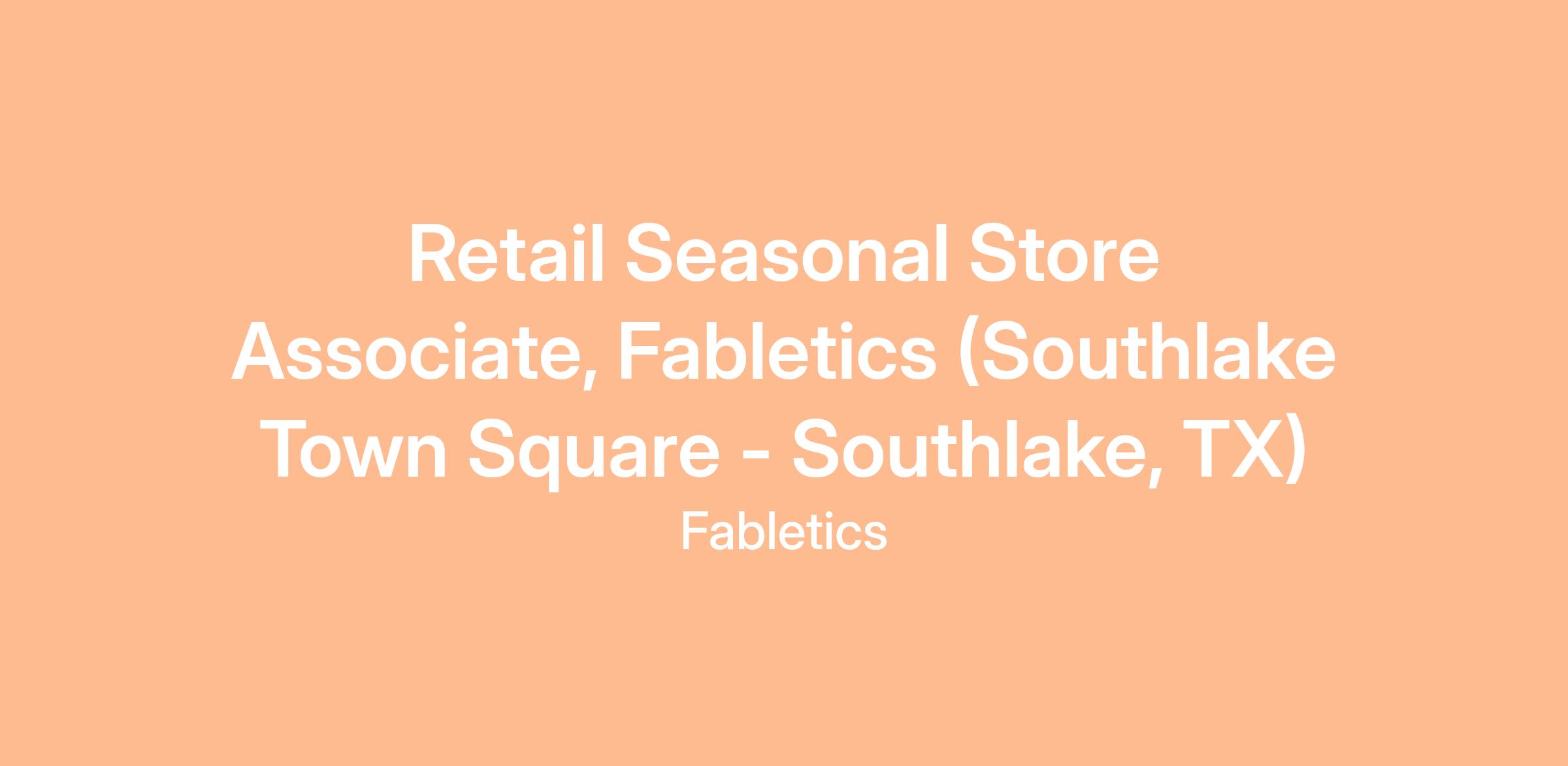 We are currently looking for driven Seasonal Store Associates for our Fabletics location at Southlake Town Square in Southlake, TX!