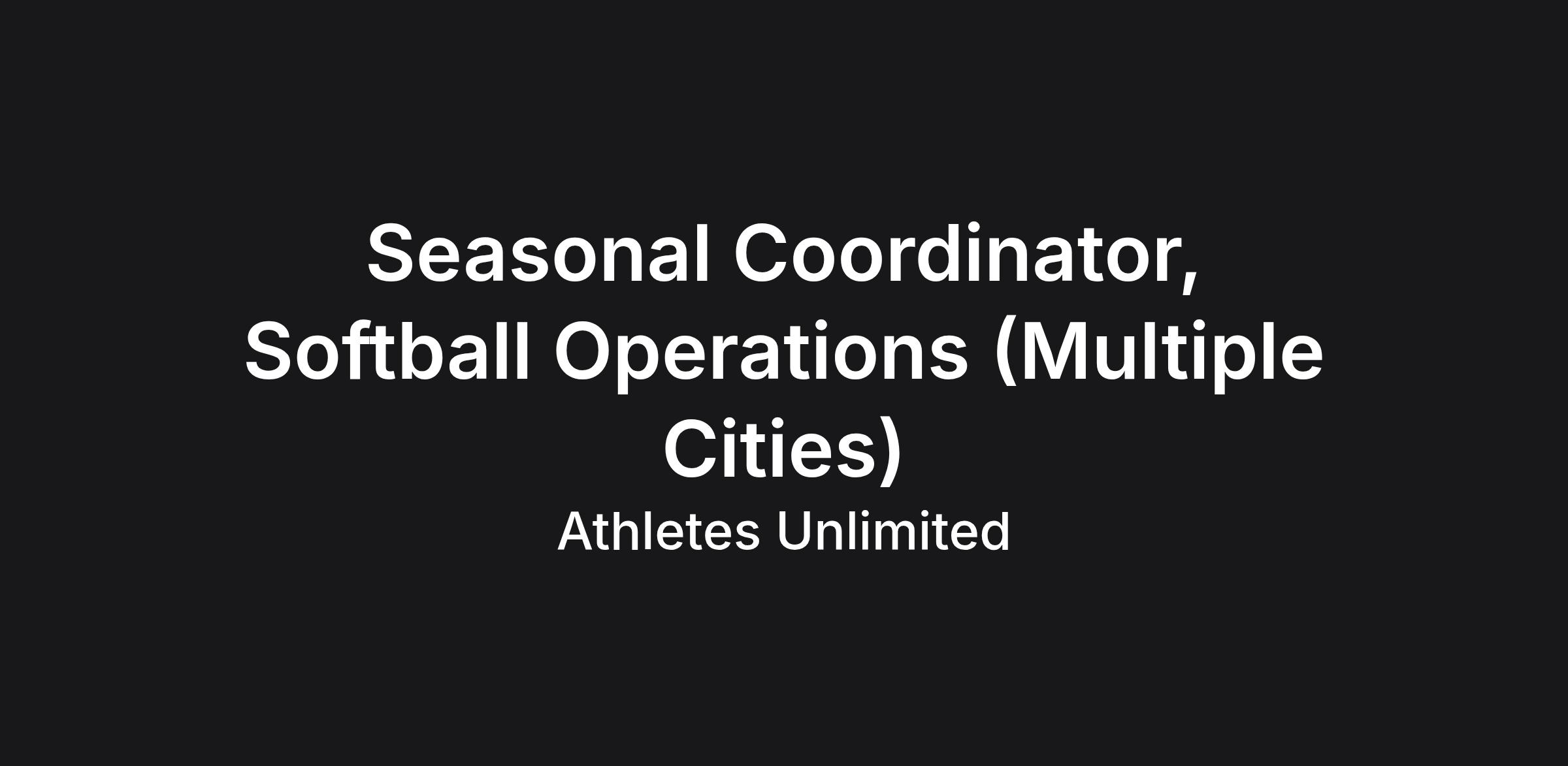 Athletes Unlimited Softball League is hiring a Seasonal Coordinator to aid in the execution of game day needs, research, presentations, and general Front Office from May to October. This role is ideal for someone with an analytical mind, passion for growing a sports league, and wants to learn from leaders in the industry. This is a part-time, seasonal position that reports to the Commissioner, but will take direction from the Sr. Manager, Softball Operations as well.