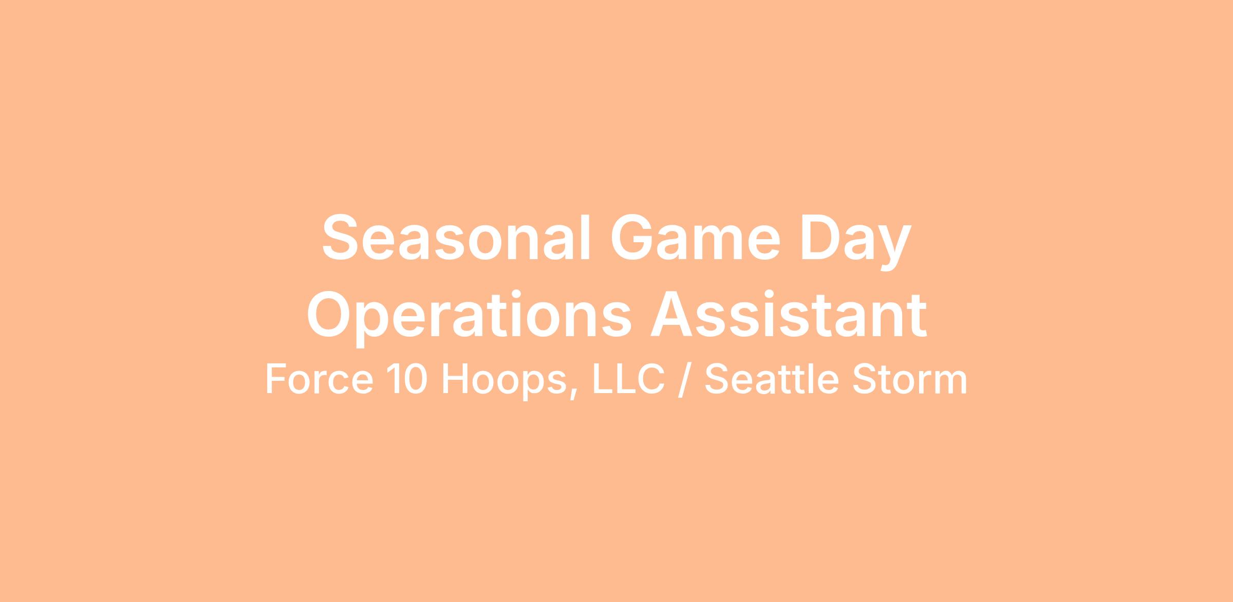The Seattle Storm Operations Department is looking for qualified candidates interested in the role of Seasonal GameDay Operations Assistant. This role is crucial to the success of home games and supports broader Seattle Storm operational needs as they arise. This is a full-time, 40 hour/week seasonal position starting in mid-April and running through approximately September with an extension for playoffs. This role is expected to work evenings, weekends, and holidays throughout the season. Position will have an in-office component in addition to game day responsibilities. Attendance at all Seattle Storm games is a requirement.