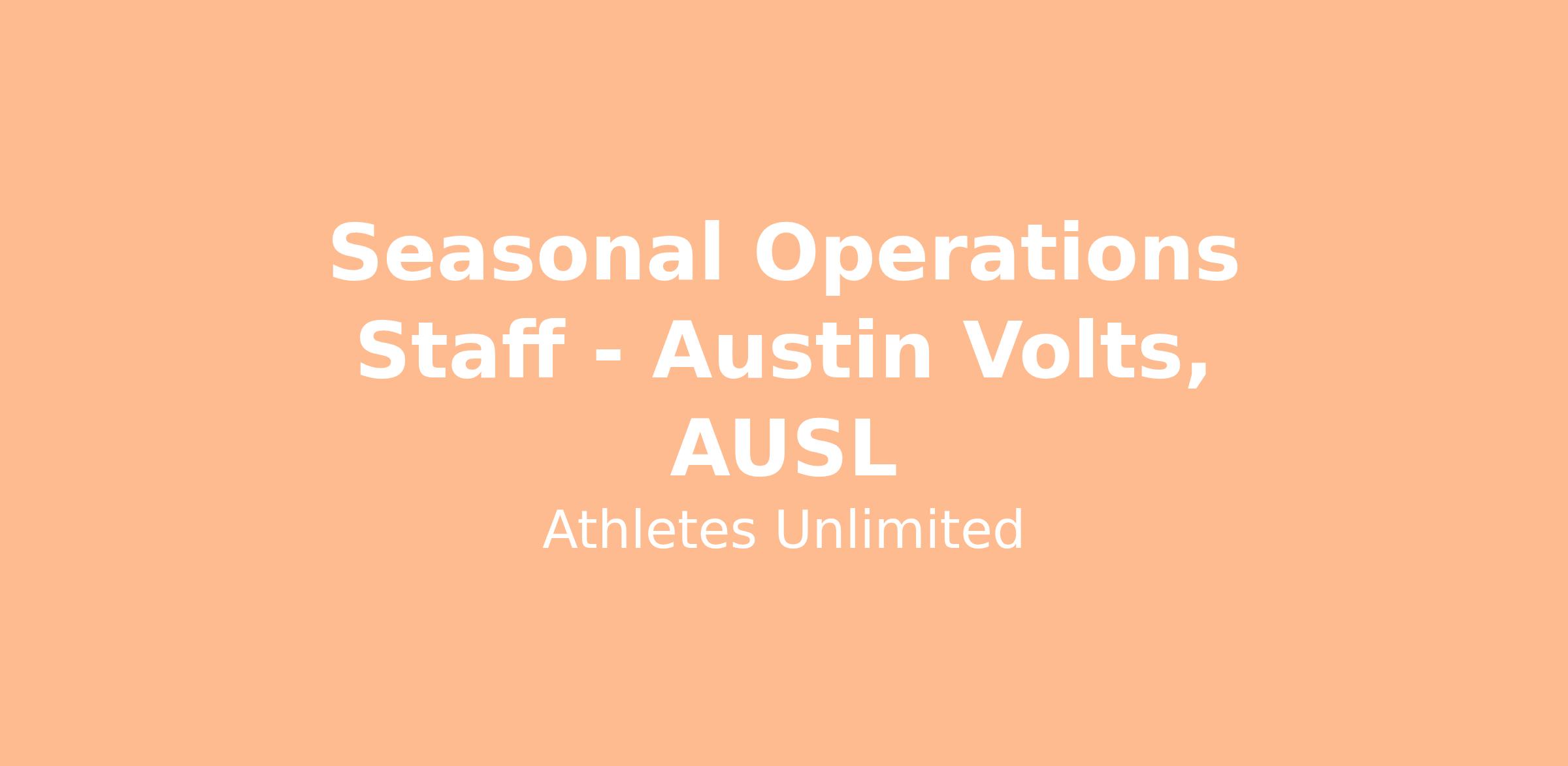 The AUSL is looking for individuals to support the Austin Volts with day to day operations and event management for practices and games. The ideal candidate has experience and familiarity with the game of softball, an ability to do physical tasks and a motivation to fill a critical role for a professional women's softball team. Applicants must be local to the Austin/Round Rock area and have reliable transportation.