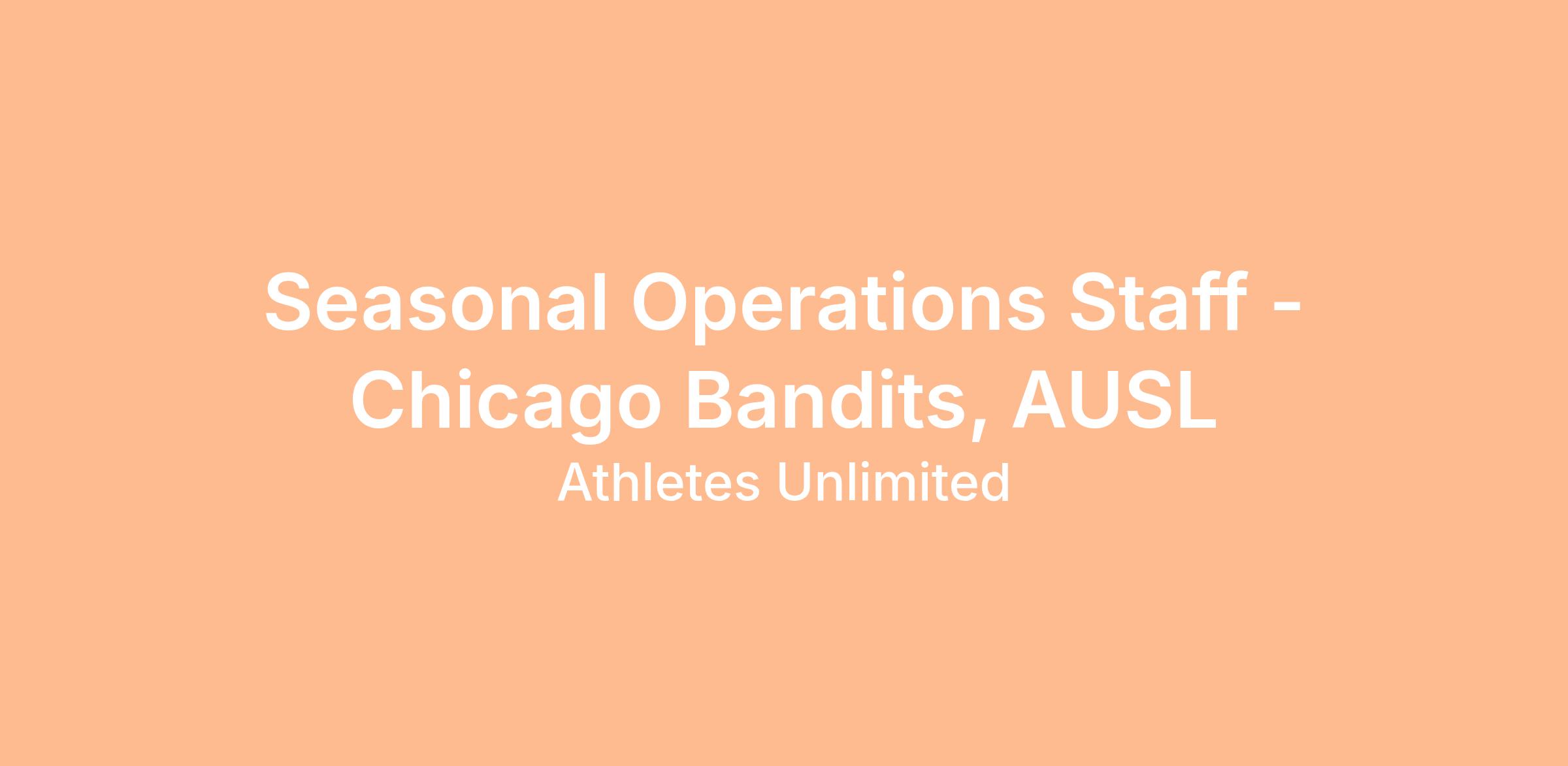 The AUSL is looking for individuals to support the Chicago Bandits with day to day operations and event management for practices and games. The ideal candidate has experience and familiarity with the game of softball, an ability to do physical tasks and a motivation to fill a critical role for a professional women's softball team. Applicants must be local to the Chicagoland area and have reliable transportation.