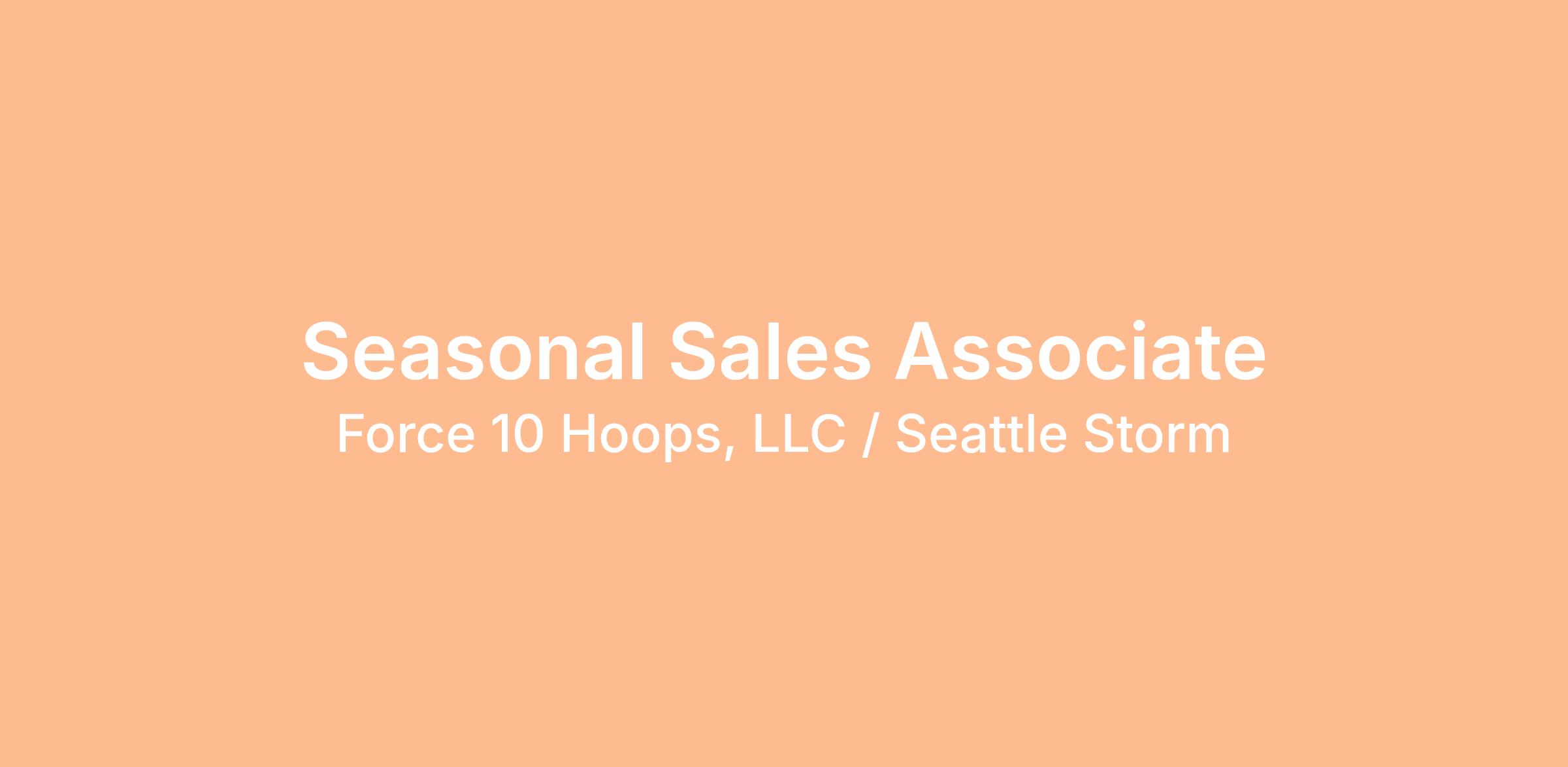 Force 10 Hoops, LLC DBA Seattle Storm is an equal opportunity employer, dedicated to a policy of non-discrimination in employment on any basis including race, color, age, sex, religion, national origin, disability, veteran’s status, sexual orientation, or gender identity/expression.