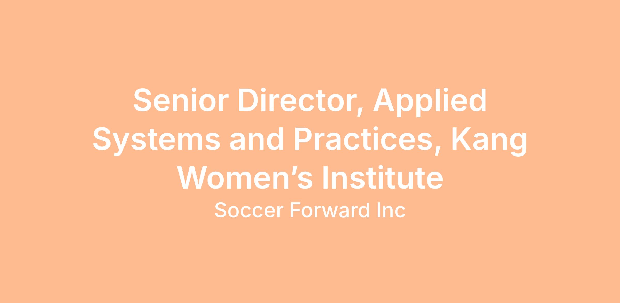 The Senior Director, Kang Women’s Institute Applied Systems and Practices is responsible for leading the application of Kang Women’s Institute systems and governance frameworks, including the Operational Best Practice Framework, across Soccer Forward’s women’s initiatives.