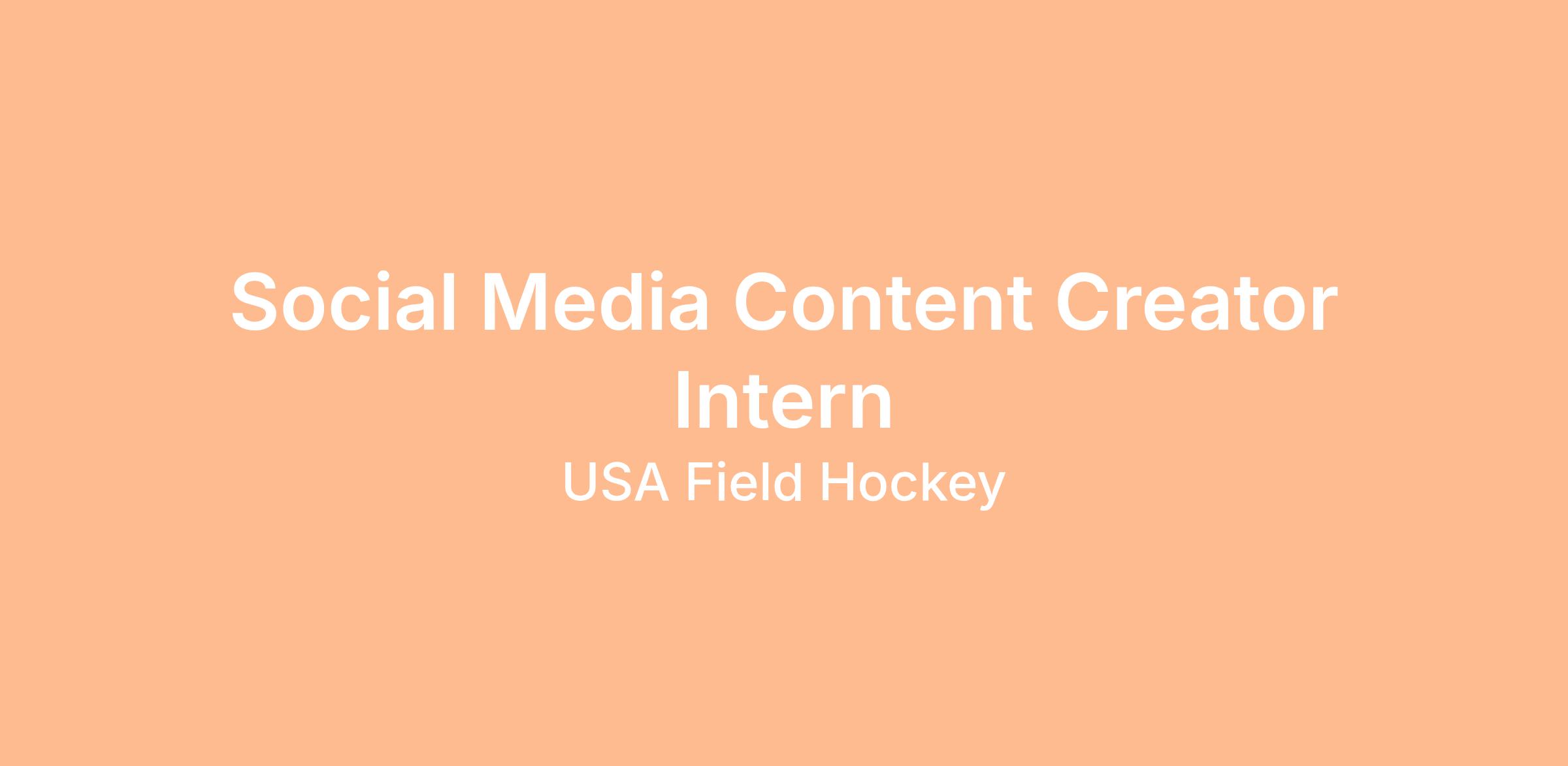 USA Field Hockey is hiring a Social Media Content Creator Intern for summer 2026. The role of this internship is to support USA Field Hockey's brand awareness efforts by creating videos to be posted on official social media channels, mainly Instagram and TikTok. The intern must be a creative individual, who is up to date on current social media language and trends. The intern must be proficient using Instagram, TikTok, Facebook, and a video editing platform (i.e., Adobe Rush, Adobe Premiere, Final Cut Pro, TikTok, or Instagram Reels.) The intern ideally will be based in the Charlotte, N.C. area, as they are expected to travel to the UNC Charlotte facility to capture content. The focus of the video content will be the U.S. Men's and Women's National Teams, at their training facility in Charlotte, N.C. Additional content may cover any range of field hockey in the United States including youth, club, college, adult, masters, etc.