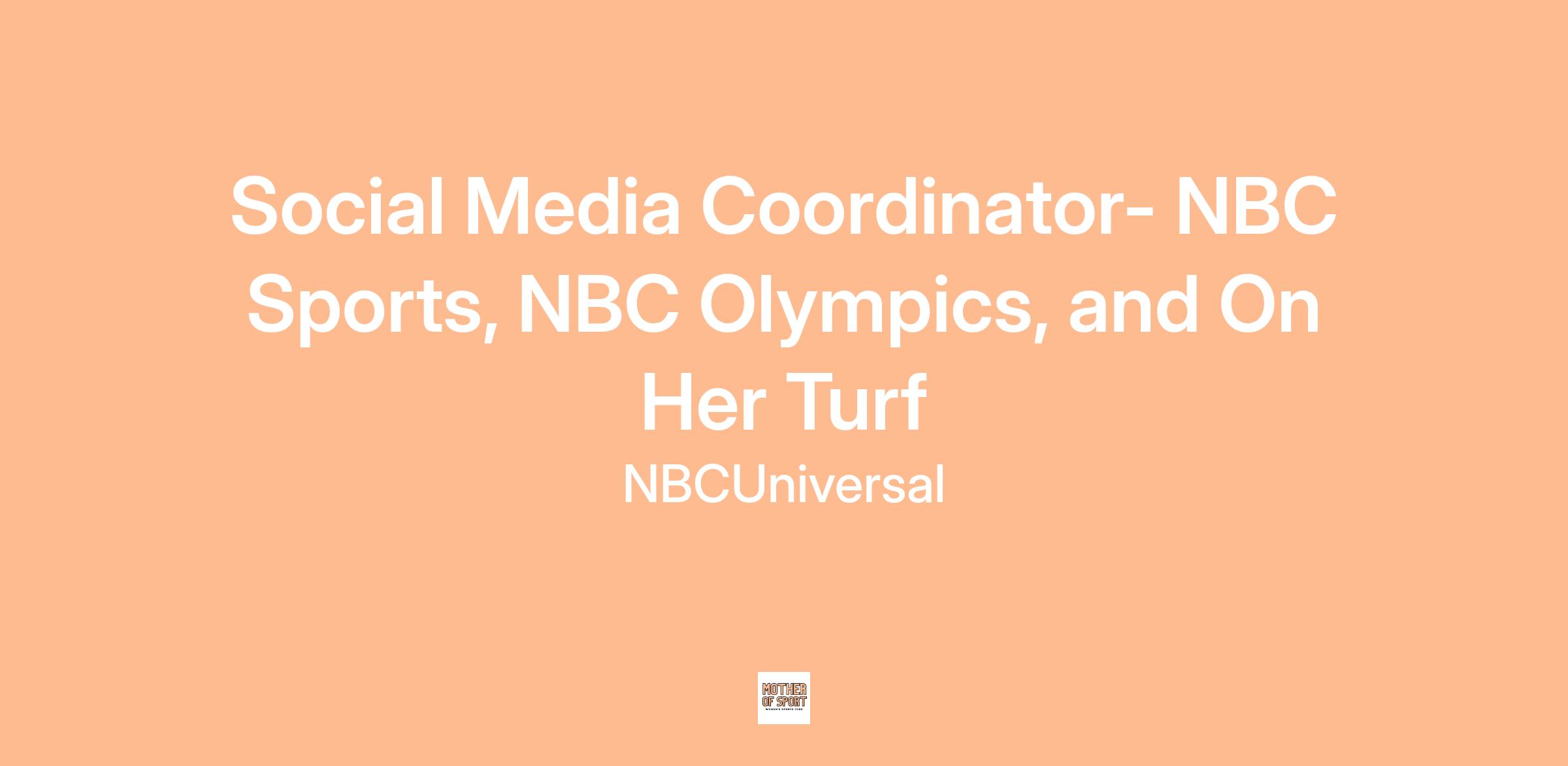 This full-time position sits on the NBC Sports marketing team and reports to an Associate Manager, Social Media Content. The role will focus on efforts surrounding the Olympics, On Her Turf and NBC Sports flagship accounts.