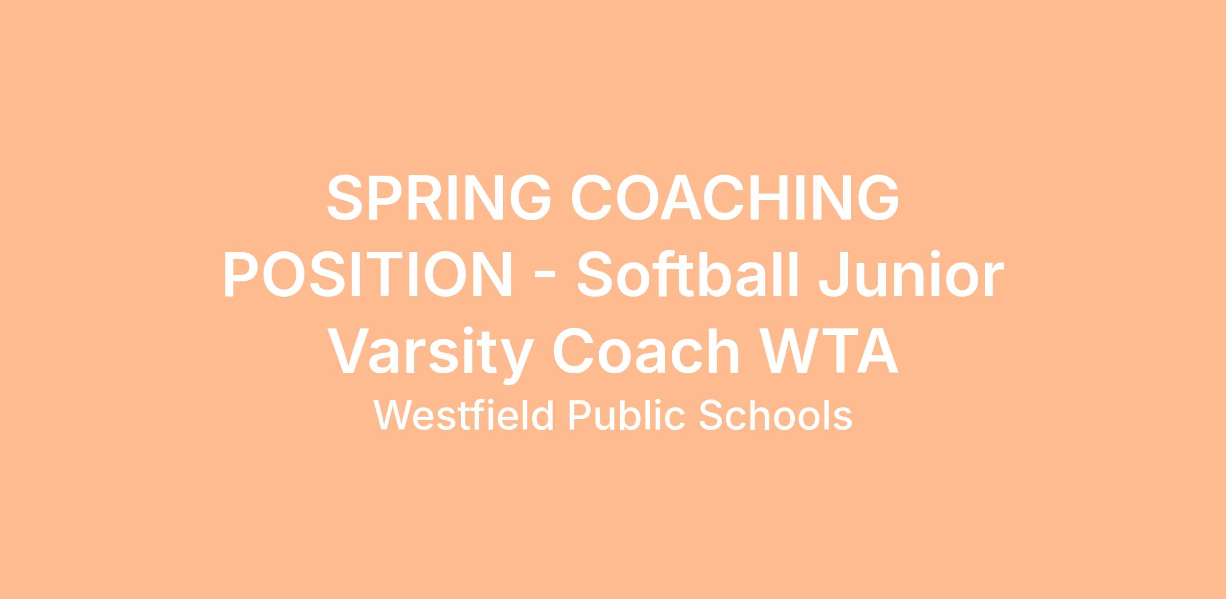 Westfield Public Schools is currently accepting applications for Softball Junior Varsity Coach for Westfield Technical Academy Spring 2026 Season.