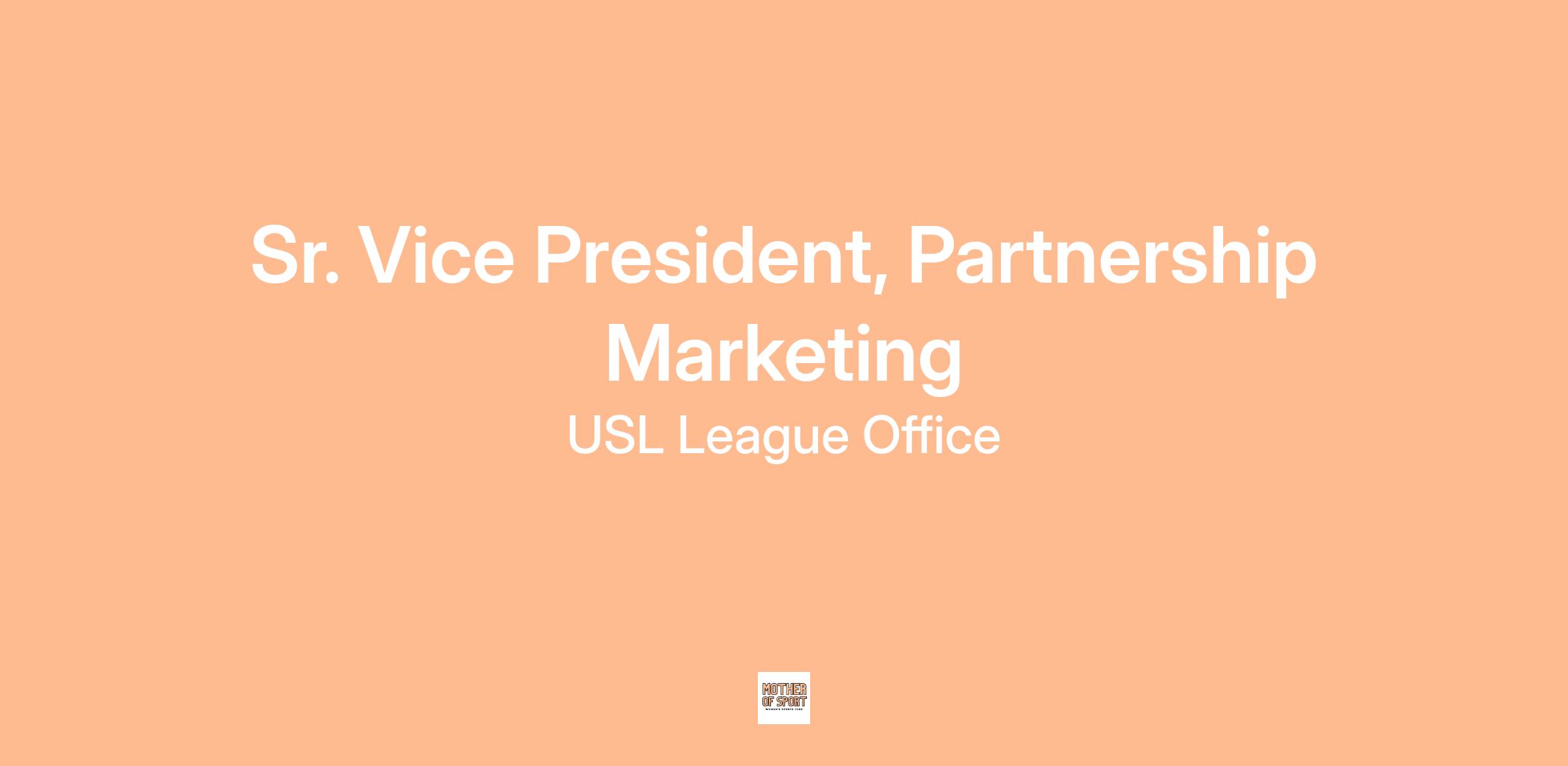 The Sr. Vice President, Partnership Marketing will lead the strategy, fulfillment, and relationship management efforts for all national partnerships across the USL. This role will oversee a growing team responsible for delivering best-in-class service, activation, and creative solutions for the league’s portfolio of partners, ensuring that every relationship drives measurable value and long-term growth for both the partner and the league, with a focus on partner satisfaction, retention, and renewal.