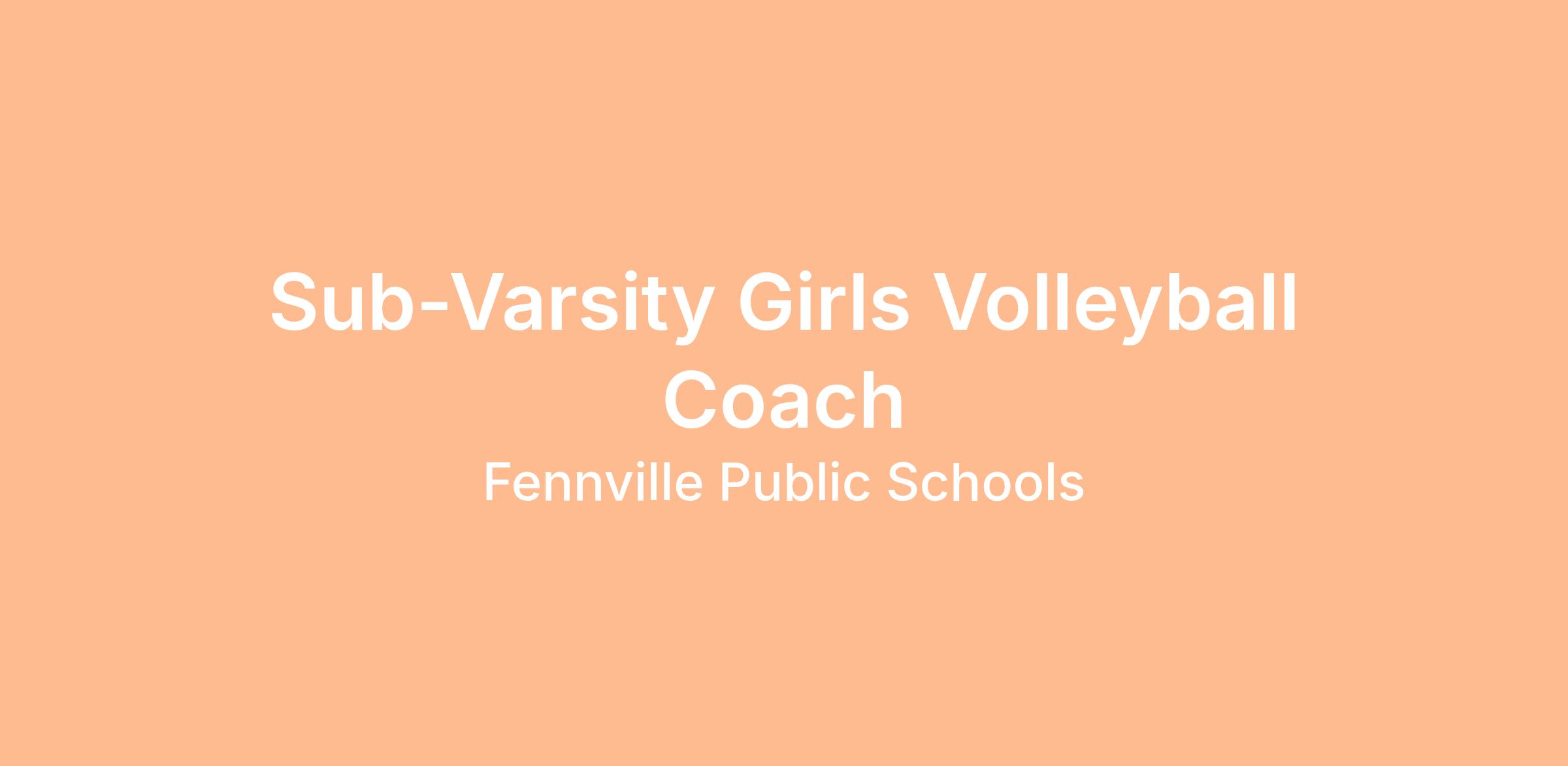 Fennville Public Schools is seeking a dedicated and enthusiastic individual to join our athletic department as a Sub-Varsity Girls Volleyball Coach for the upcoming season. The ideal candidate will possess a passion for volleyball and a commitment to fostering the personal and athletic development of student-athletes. This seasonal position involves coaching, mentoring, and supporting young athletes in a competitive and positive environment.