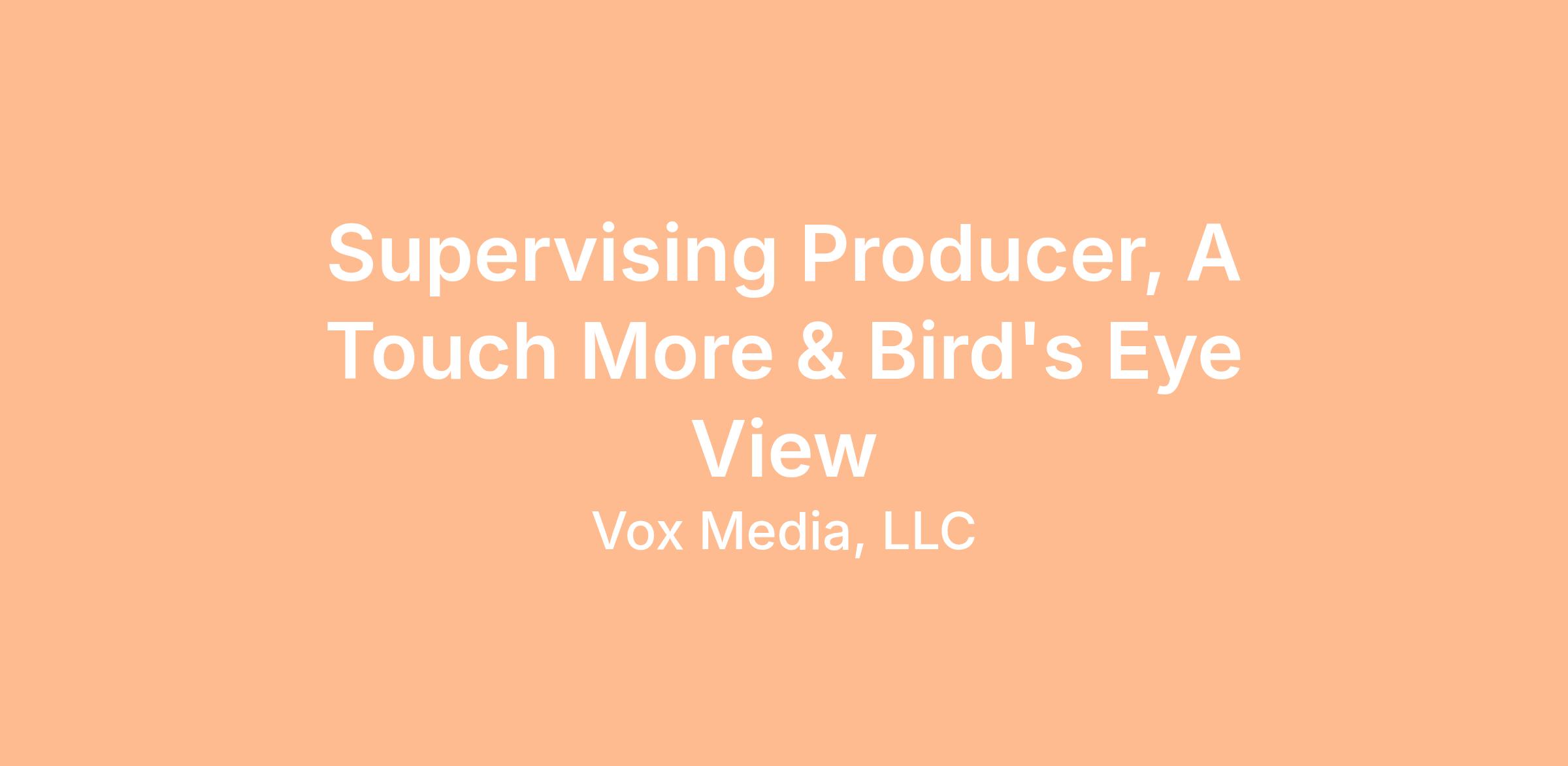 The Vox Media Podcast Network is seeking an experienced Supervising Producer to lead “A Touch More” and “Bird’s Eye View,” two weekly flagship women’s sports and lifestyle podcasts. This role will oversee production teams and collaborate with host talent to maintain the shows’ high editorial quality, and pursue innovation. You will act as both a creative developer and as a showrunner, ensuring production excellence while also serving as a key liaison for advertising partnerships and live events.