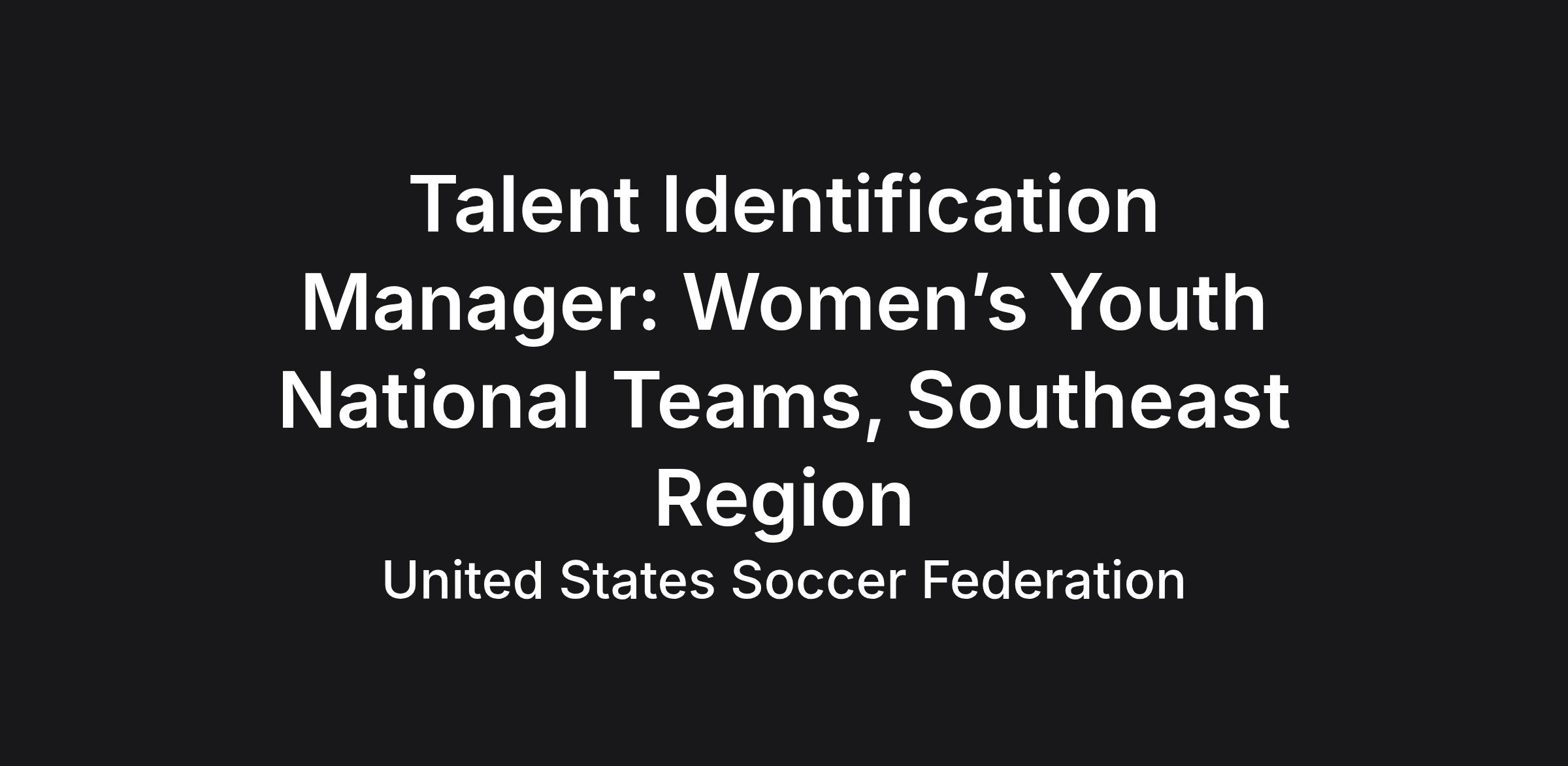 Reporting into the Talent Identification Senior Manager and Director, the Talent Identification Manager is responsible for gender specific, Youth National Team scouting for an assigned geographic region. The role involves leading all aspects of U.S. Soccer’s Talent ID plan, while building and managing a quality and diverse network of part-time scouts and developing intimate knowledge and relationships with key clubs and members to gather detailed information and drive an accurate, efficient, and collaborative decision-making and player selection process.