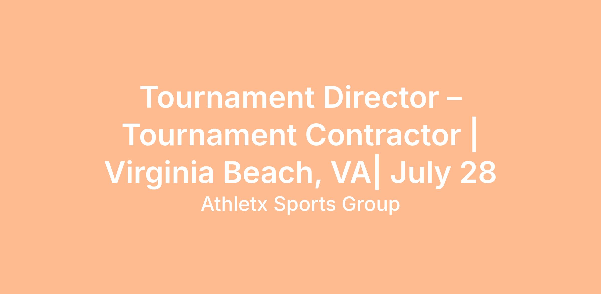 Athletx Sports Group is seeking organized and dependable Tournament Directors to support on-site game operations during the Softball World Series tournament. This is a temporary, event-specific role from July 28 - August 2, 2026, based in Virginia Beach, VA. Successful candidates will play a vital part in ensuring games run smoothly, participants have a positive experience, and the event's high standards are maintained.