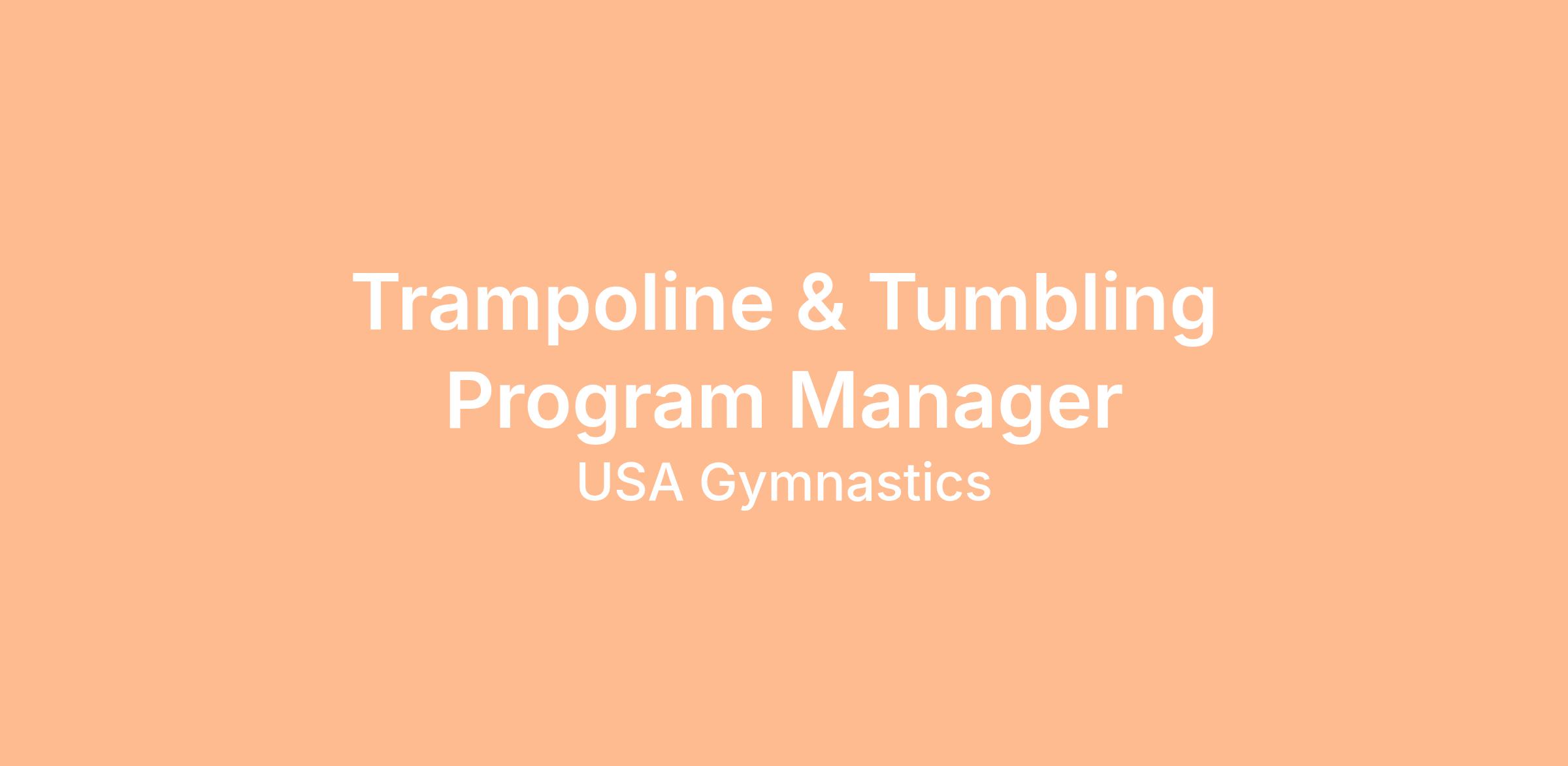 The Trampoline & Tumbling Program Manager provides operational and administrative support for the Trampoline & Tumbling (T&T) program. Reporting to the T&T Program Director, this position assists with the coordination of program activities, events, and communications, and supports the implementation of program priorities and annual initiatives. The Program Manager plays an integral role in supporting program efficiency, stakeholder coordination, and policy adherence, while assisting in the promotion of a safe, healthy training environment and compliance with USA Gymnastics rules, policies, and Safe Sport provisions across the Trampoline & Tumbling community.