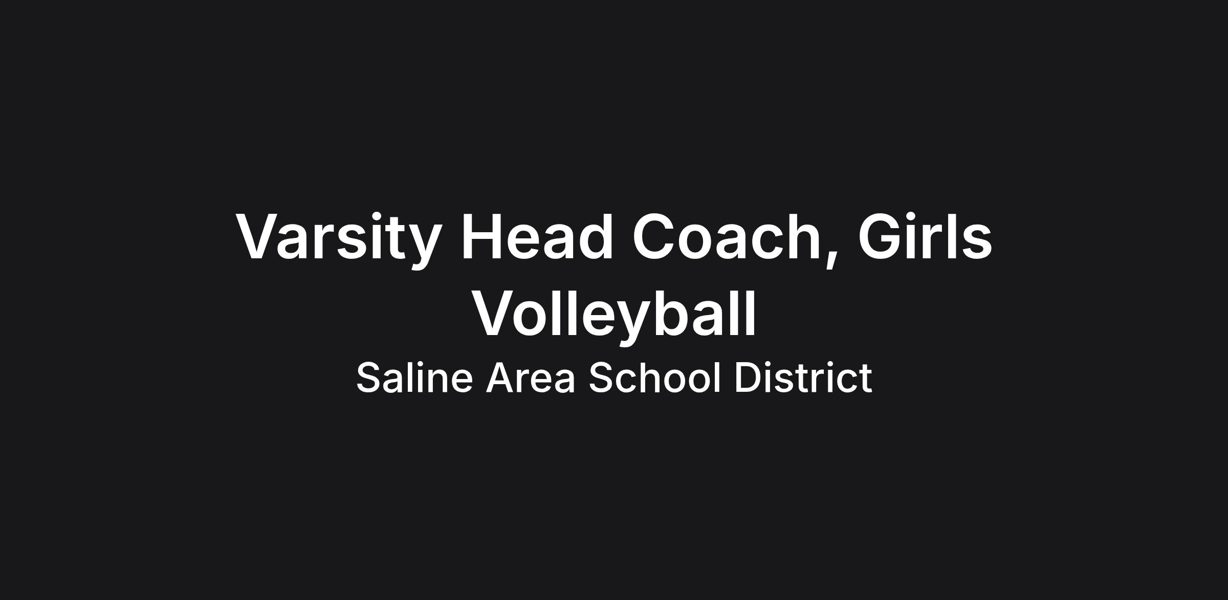 Saline Athletics is seeking an outstanding individual to lead our Varsity Girls Volleyball program as Head Coach. The ideal candidate will be an exemplary role model on and off the field, court, or pool; a skilled educator of both sport-specific techniques and life skills; and an excellent communicator with players, families, and the broader school community.