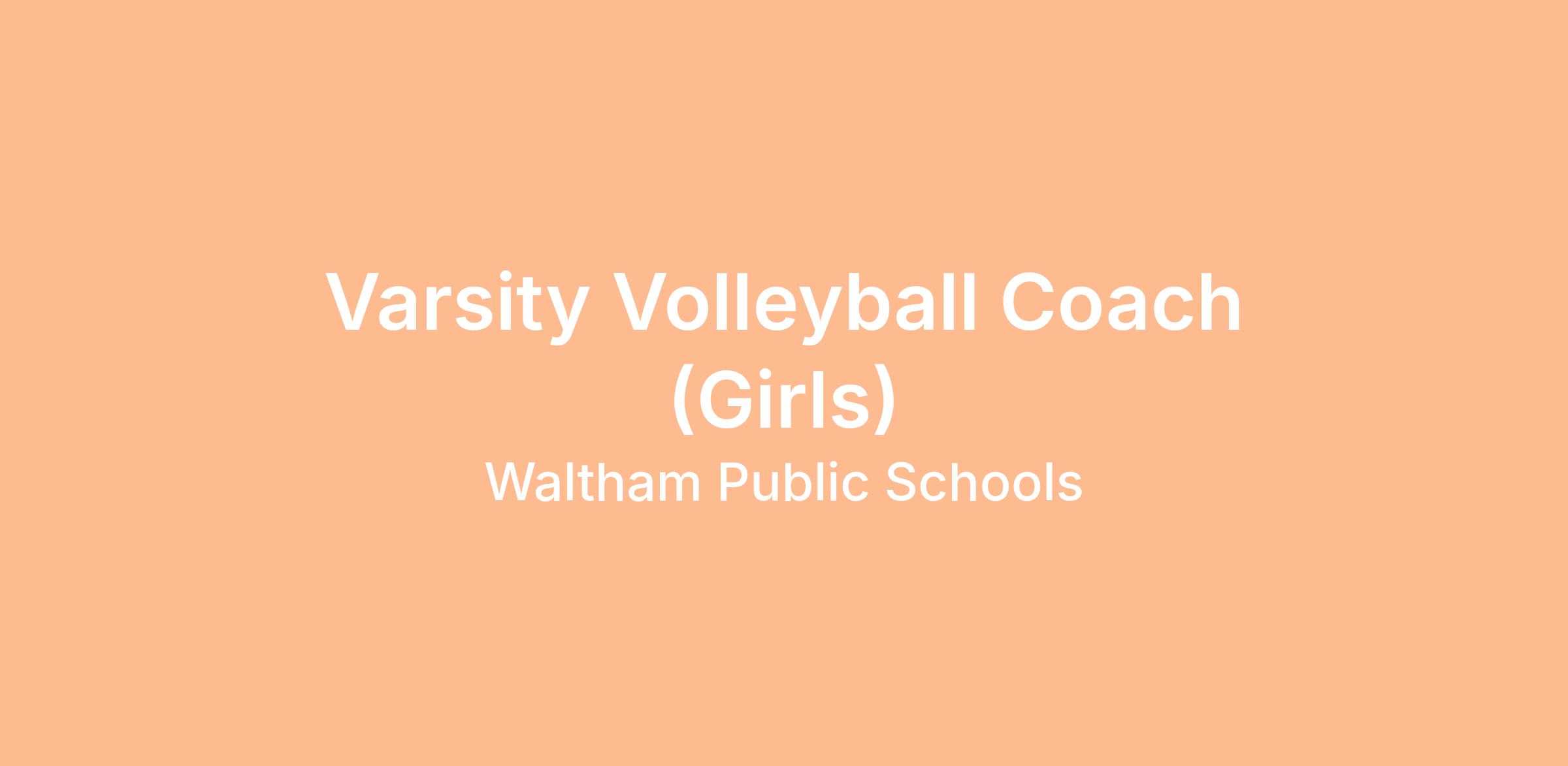 Job Goal: A member of the Dual County League, Waltham Public Schools has an immediate opening for a varsity volleyball coach (girls).